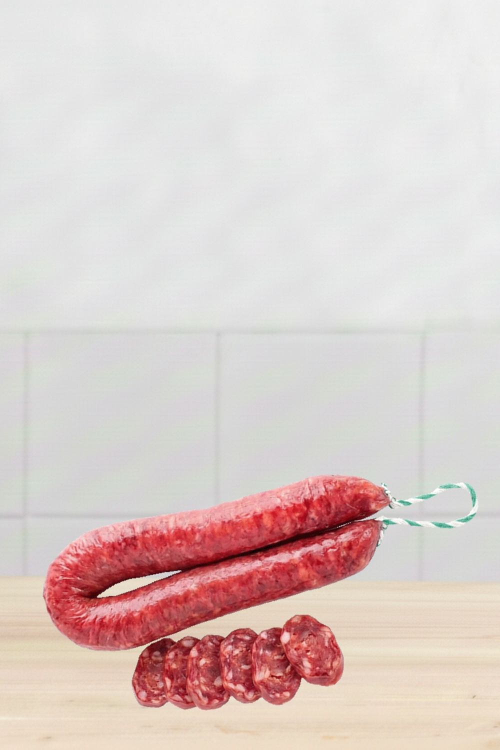 La Longaniza Qalat es un embutido tradicional curado en las frías tierras de Calamocha (Teruel), donde la altitud y el clima contribuyen a una curación natural ideal. Está elaborada con carne y panceta de cerdo seleccionadas, aliñada con especias y conservada bajo métodos tradicionales, lo que le aporta un sabor intenso y auténtico y una textura firme. Perfecta para cortar en rodajas finas y disfrutar en tablas de embutidos, tapas, bocadillos o acompañando cualquier plato tradicional.