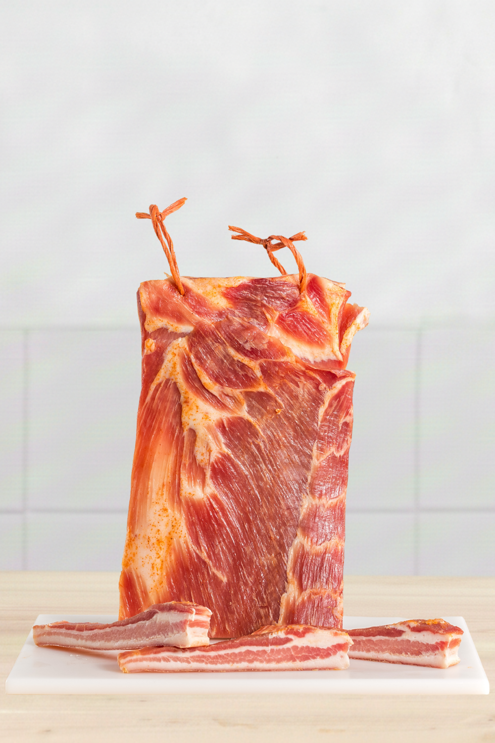 Se utiliza tripera de razas rústicas, como el duroc, obteniendo un torrezno ancho y jugoso. Las piezas se cubren con adobo tradicional y se secan hasta alcanzar el punto óptimo para su fritura. Será la destreza de cada cocinero la que complete la preparación de esta deliciosa especialidad de nuestra gastronomía.